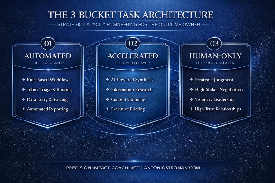 Most executives are losing 8–12 hours a week to work that should be Automated, Accelerated, or protected as Human-only. This free audit shows you where the leak is — and puts a dollar figure on it.